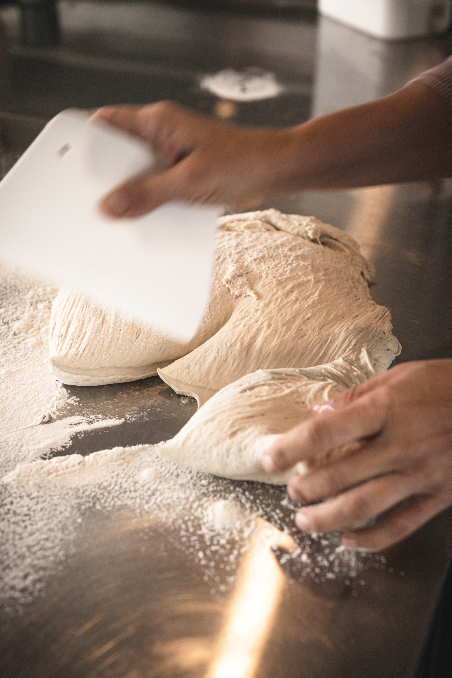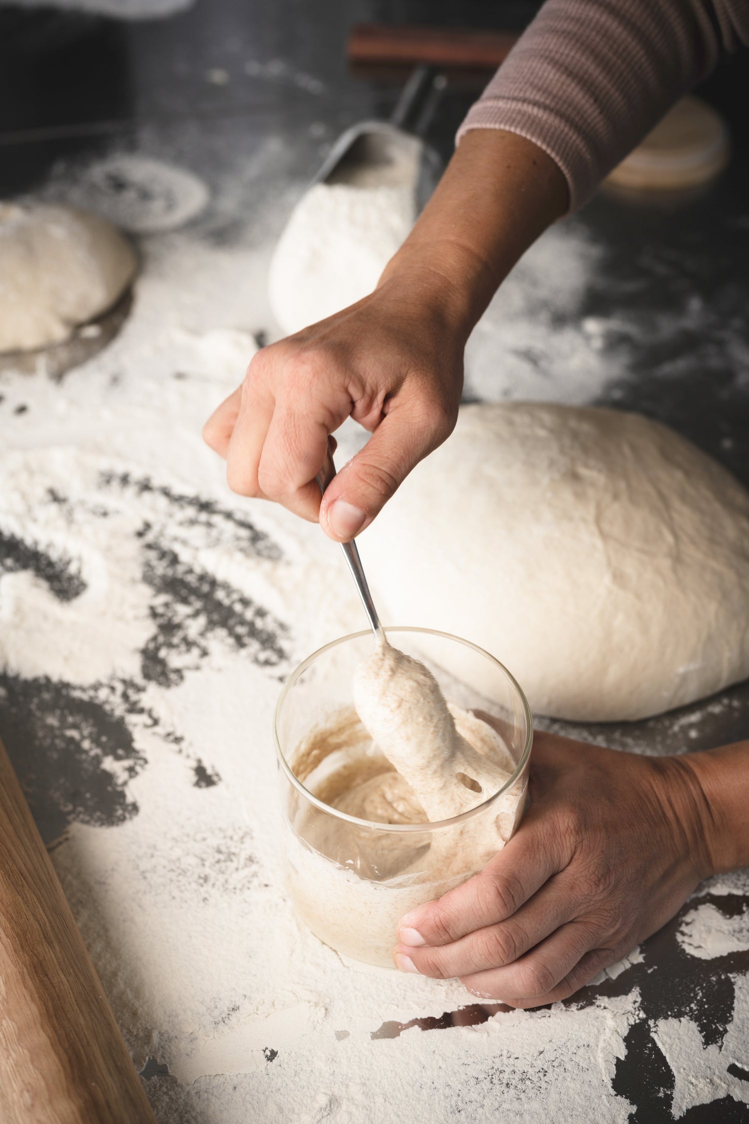 Our starter has its origins in early 2020 and is kept healthy and active by being regularly ‘fed’ with high quality organic whole rye flour. We allow for long fermentation to give friendly bacteria the time needed to eat through and activate wild yeast naturally residing in flour.